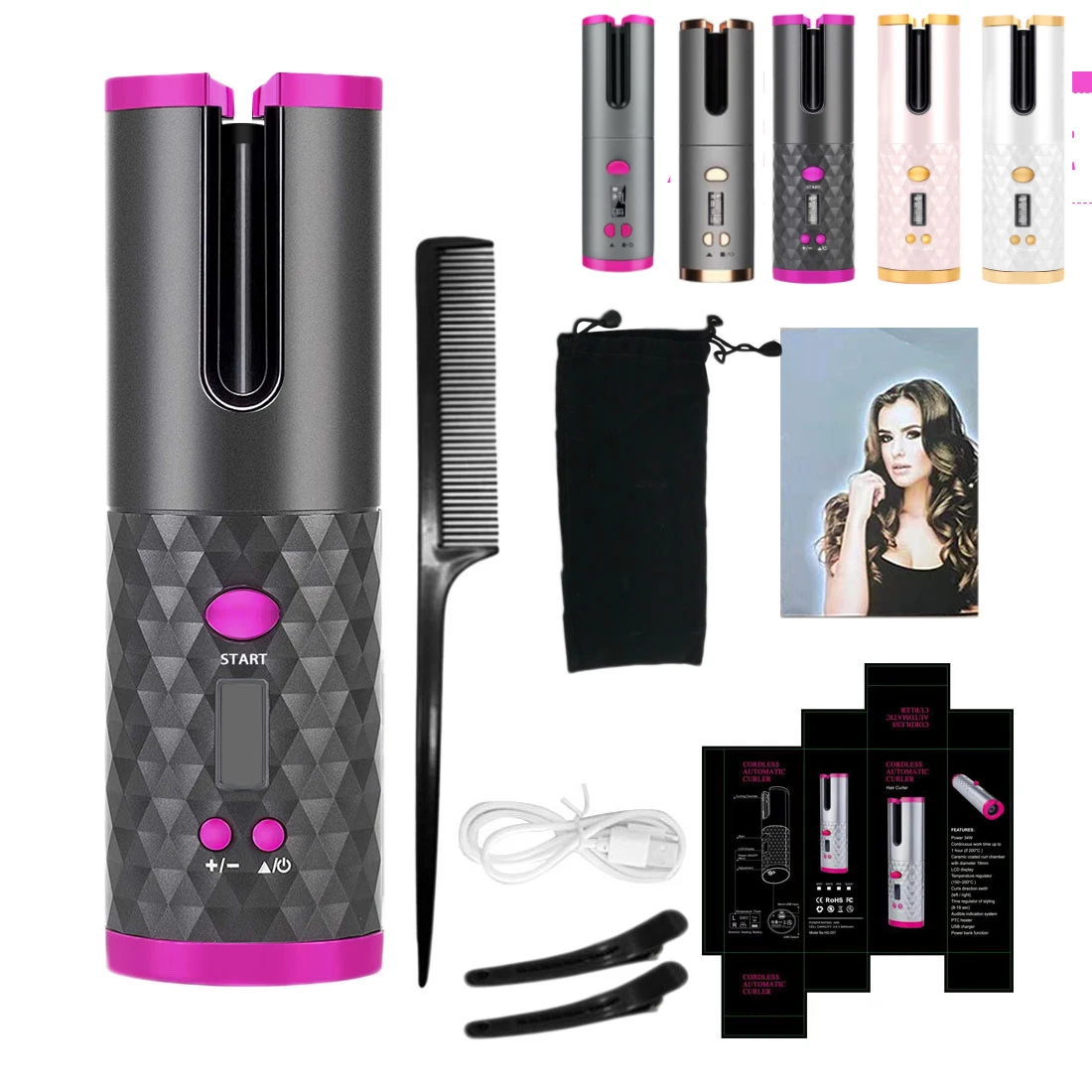 Cheapest Cordless Automatic Hair Curling Iron Hair Curler Portable USB Rechargeable Hair Wave Styer LCD Display with 1 Comb+2pc Clips